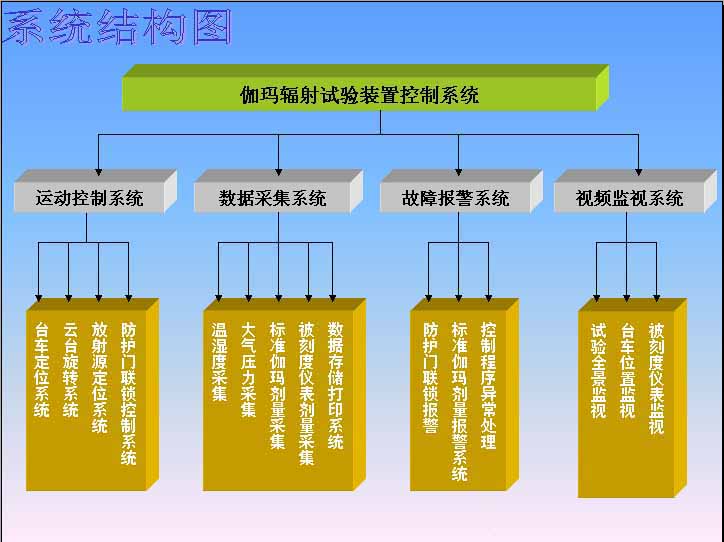 该“伽马辐射试验装置”一共由 土建工程、机械设备制造加工工程、放射源采购运输与导入工程、自动控制系统工程等四部分构成。我公司作为该工程主要分包商,单独承接了其自动控制系统工程。通过三个多月的紧张施工和安装调试,所有全部工程已完全竣工,并通过了华瑞科学仪器(上海)有限公司的初步验收。系统需要稳定运行二月后,将进行全部工程的全面验收。